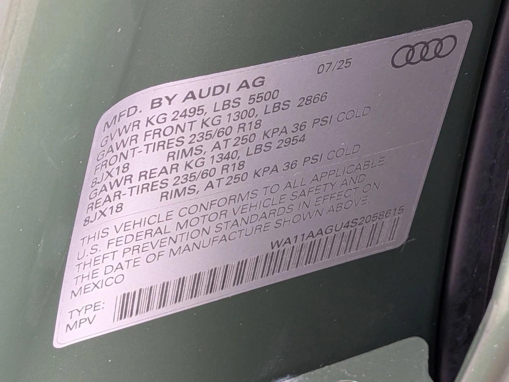 Audi Hunt Valley has a wide selection of exceptional pre-owned vehicles to choose from, including this 2025 Audi Q5. This Audi includes: DISTRICT GREEN METALLIC CONVENIENCE PACKAGE Heated Steering Wheel Back-Up Camera Aerial View Display System AUDI BEAM-RINGS AUDI GUARD ALL-WEATHER FLOOR MATS PANORAMIC SUNROOF Panoramic Roof Generic Sun/Moonroof Sun/Moonroof *Note - For third party subscriptions or services, please contact the dealer for more information.* With CARFAX one owner report you can be sure that this Audi Q5 was only gently owned. Sure, every Certified Pre-Owned Audi is rigorously inspected. However, a Certified Pre-Owned Audi Q5 Premium from Audi Hunt Valley offers complete peace of mind. Treat yourself to an SUV that surrounds you with all the comfort and conveniences of a luxury sedan. The Audi Q5 Premium's pristine good looks were combined with the Audi high standard of excellence in order to make this a unique find. No matter the varying terrain or weather conditions, this all-wheel drive vehicle will help you reach your destination safely and securely in a well-appointed cabin with many features found on cars twice the price. Marked by excellent quality and features with unmistakable refined leather interior that added value and class to the Audi Q5 Premium. The interior of this Audi Q5 Premium has been through meticulous inspection and could almost pass for a brand new vehicle. Well-equipped, well-cared for and still covered under the manufacter's factory warranty. This Audi Q5 Premium comes standard with features that are essential in the 21st Century. However, Audi decided to take it one step further and add a handful of quintessential options that will undoubtedly add to this vehicle's quality and value. There are other vehicles and then there is the Audi Q5 Premium. It is one of the most unique vehicles on the market, and you would be hard pressed to find another dealer offering something quite like this Audi.