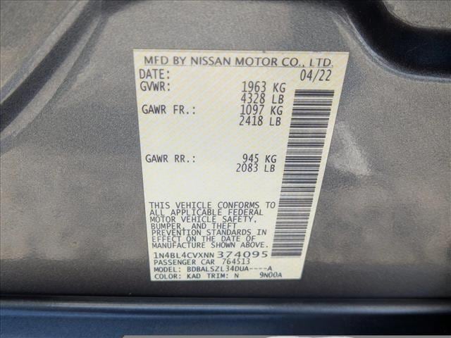 This outstanding example of a 2022 Nissan Altima 2.5 SR is offered by AutoNation Toyota White Marsh. Why does this vehicle look so great? The CARFAX report shows it's only been owned by one owner. This wonderfully fuel-efficient vehicle offers a supple ride, quick acceleration and superior styling without sacrificing MPGs. Based on the superb condition of this vehicle, along with the options and color, this Nissan Altima 2.5 SR is sure to sell fast. The quintessential Nissan -- This Nissan Altima 2.5 SR speaks volumes about its owner, about uncompromising individuality, a passion for driving and standards far above the ordinary. Contact AutoNation Toyota White Marsh today for information on dozens of vehicles like this 2022 Nissan Altima 2.5 SR. You could spend more on fuel each month than on your vehicle payments, so why not consider one with exceptional fuel economy like this 2022 Nissan Altima. You could keep looking, but why? You've found the perfect vehicle right here. This is the one. Just what you've been looking for. You can finally stop searching... You've found the one you've been looking for.